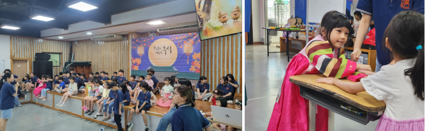 또한 민족 고유의 명절 추석을 맞이해 10월 11일 토요일 학생들과 가족들이 모두 학교에 모여 추석 행사를 진행했다. 한복을 입은 아이들과 한글학교 교복을 입은 아이들이 어울려 이야기를 나눴다. 그리고 집중해 송편을 만드는 등 다양한 활동을 했다. 어린아이부터 어른들까지 팔씨름, 딱지치기, 투호놀이, 제기차기 등 다양한 전통놀이를 함께 즐기며 모습에 타국에서 즐거운 추석을 즐겼다.