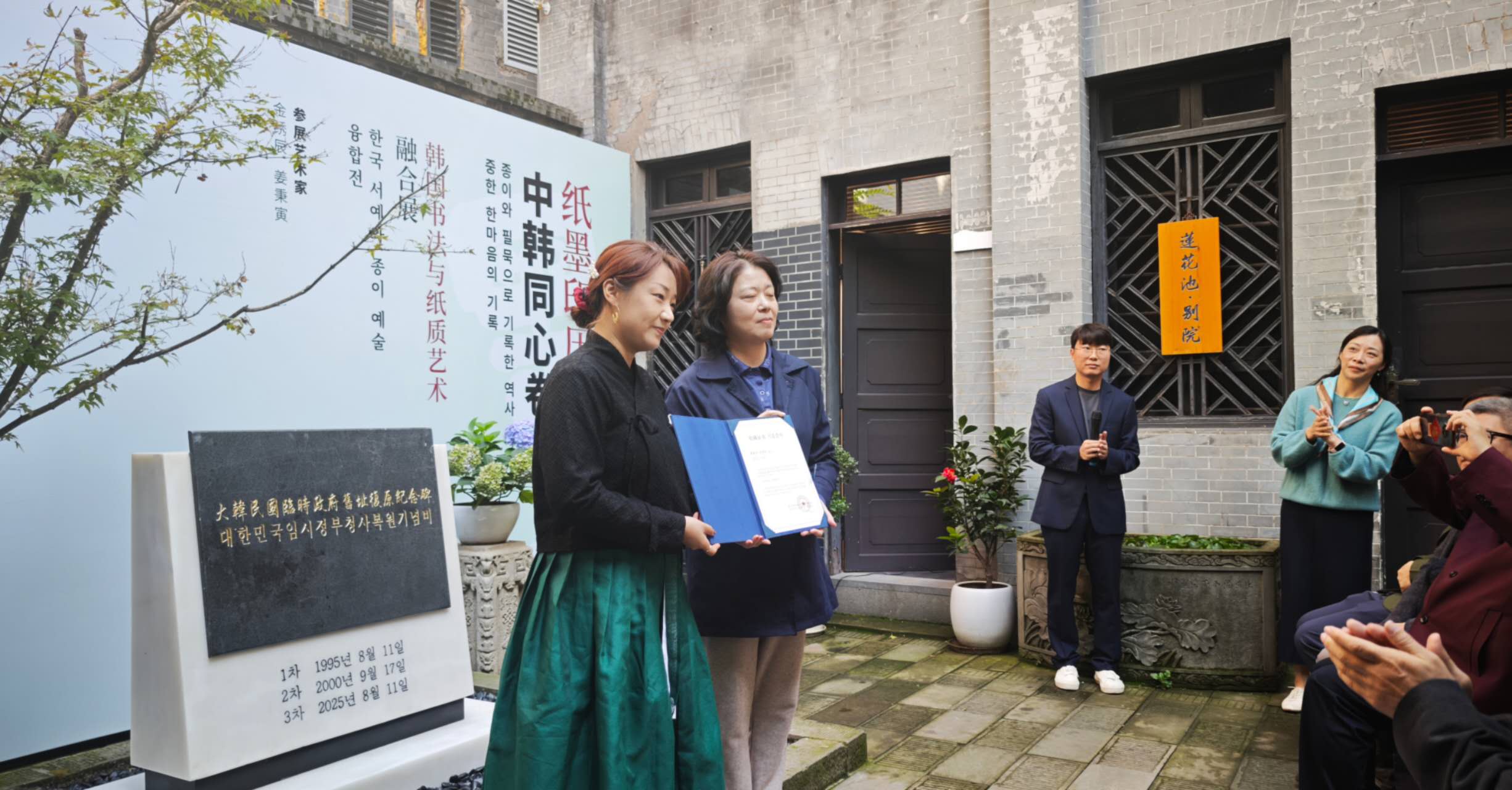 2025년 10월 28일, 중국 충칭(重慶) 대한민국 임시정부 진열관에서는 특별한 전시가 열렸다. 한글 서예 작가 강병인과 종이 예술가 김수진이 함께한 이번 전시는 '독립운동의 기억과 문화의 힘'을 주제로 서예와 종이 조형예술을 통해 한·중 양국의 역사적 연대를 예술적으로 재조명했다. 진열관이 자리한 충칭은 대한민국 임시정부가 1940년부터 광복까지 활동한 상징적인 공간으로, 이번 전시는 그 역사적 맥락 속에서 더욱 깊은 울림을 전했다. 이번 전시는 충칭 대한민국 임시정부 진열관이 주최하고 '운마·학예당(云马·学艺堂)'이 협력한 가운데 진행됐다. 개막식에는 충칭 한국인 상회, 서남 대학, 충칭 시민맹특원 지부 등 한·중 문화 예술계 인사들이 참석해 두 작가의 예술 세계를 함께 축하했다. 전시는 '서예'와 '종이 예술'이라는 전통적 표현 매체가 만나 과거의 독립 정신을 오늘의 언어로 풀어낸 점에서 의미가 깊었다. 한글 서예 작품들이 전시장 벽면을 따라 힘 있게 걸려 있었고, 그 앞에는 김수진 작가의 종이 조형물이 공간을 감싸며 마치 흔들 흔들 '바람처럼' 흐르는 듯한 인상을 주었다.
