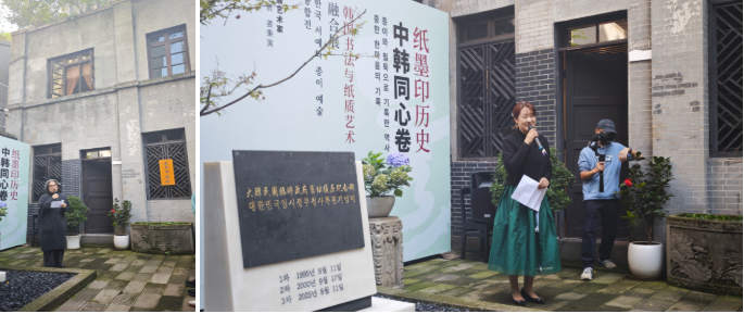 이번 전시는 단순히 한국의 독립운동을 기념하는 자리가 아니라 그 정신을 매개로 한·중 양국이 공유한 역사적 연대의 의미를 되새기는 자리이기도 했다. 중문 전시 서문에는 '서예와 예술의 융합을 통해 중한 양국이 함께 항전했던 역사를 되짚고, 역사와 예술의 대화를 펼친다(重温中韩两国并肩抗战的历史,呈现历史与艺术的对话)'라는 문구가 적혀 있었다. 이는 이번 전시가 단순한 미술 행사를 넘어, 역사적 공감과 문화적 교류를 지향하고 있음을 잘 보여준다. 개막식에서는 두 작가가 각각 작품 제작 과정과 주제 의식에 대해 발표했으며, 진열관은 두 사람에게 '예술작품 소장증서(艺术作品收藏证书)'를 수여해 이 전시가 한·중 문화 교류의 상징적 계기가 되었음을 확인했다.