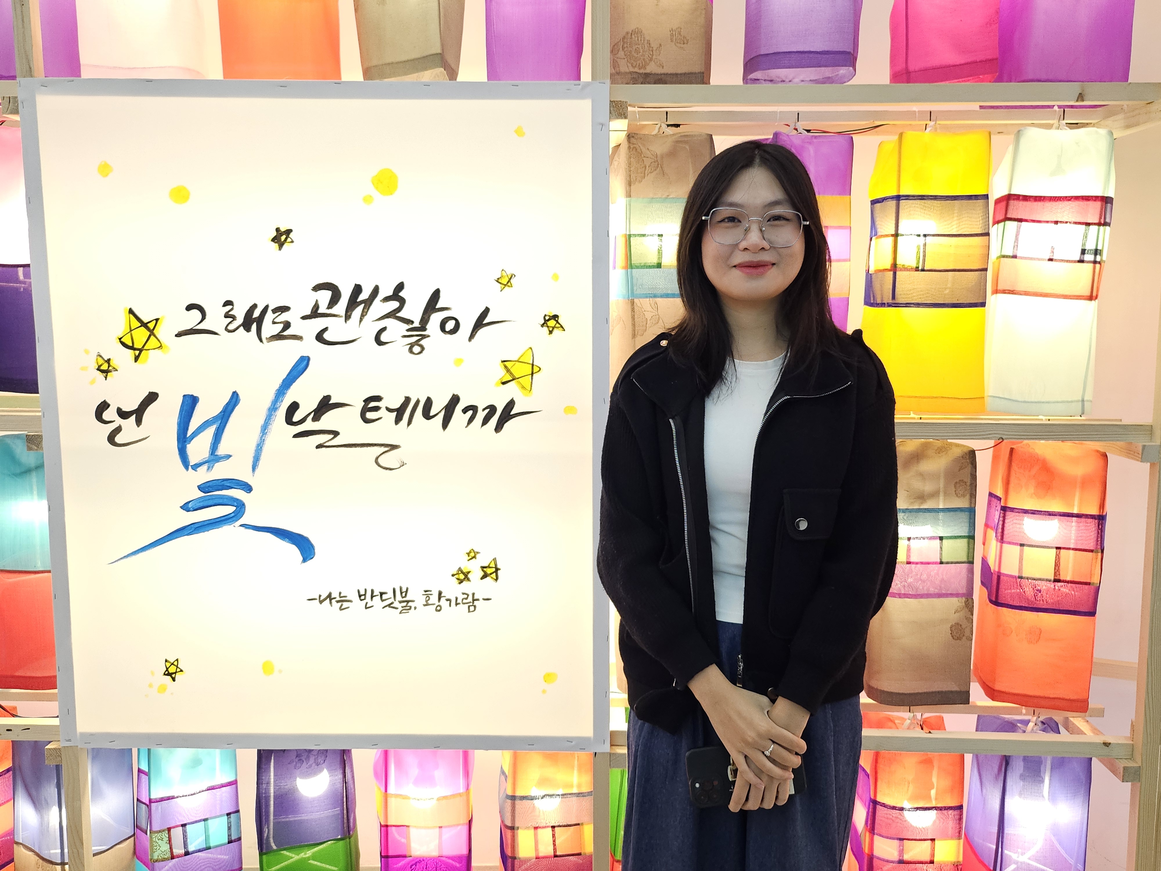 전시장 전체의 공간 장식이 정말 인상적이었습니다. 입구에서부터 이어진 등불 배치가 섬세하고 아름다웠고, 불빛이 완전히 켜지자 다채로운 색으로 가득 차 마치 한국에 온 것 같은 기분이 들었어요. 특히 딸이 반짝이는 불빛에 감탄하며 연신 사진을 찍을 정도로 즐거워했습니다.