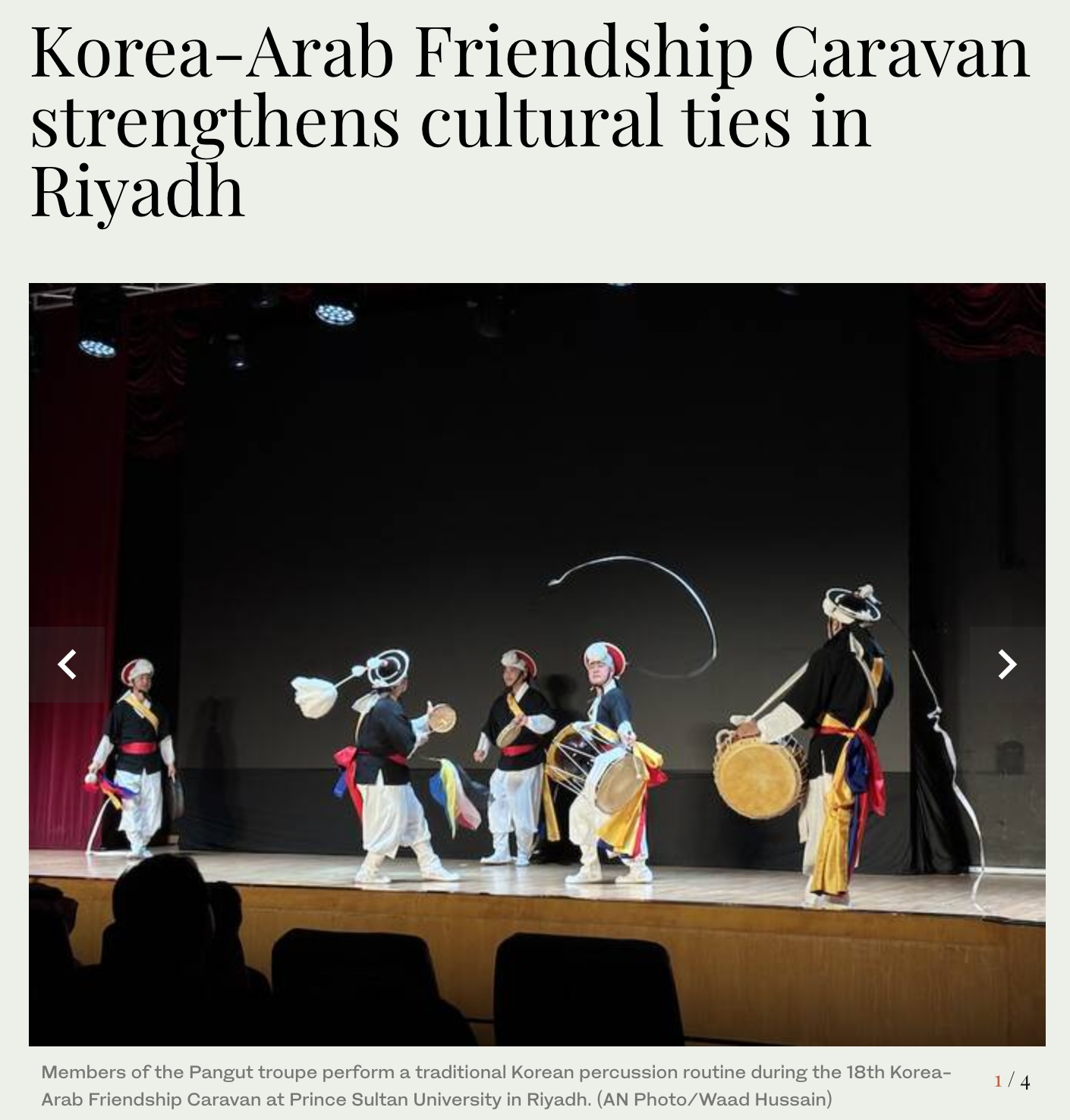< 현지 매체 보도 기사 및 공연 사진 - 출처: 아랍 뉴스(Arab News) >