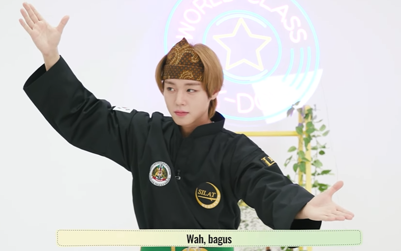 < 쁜짝 실랏을 체험하는 배우 박지훈 – 출처: ‘KBS WORLD Indonesian’ 유튜브 채널(@KBSWORLDIndonesian) >
