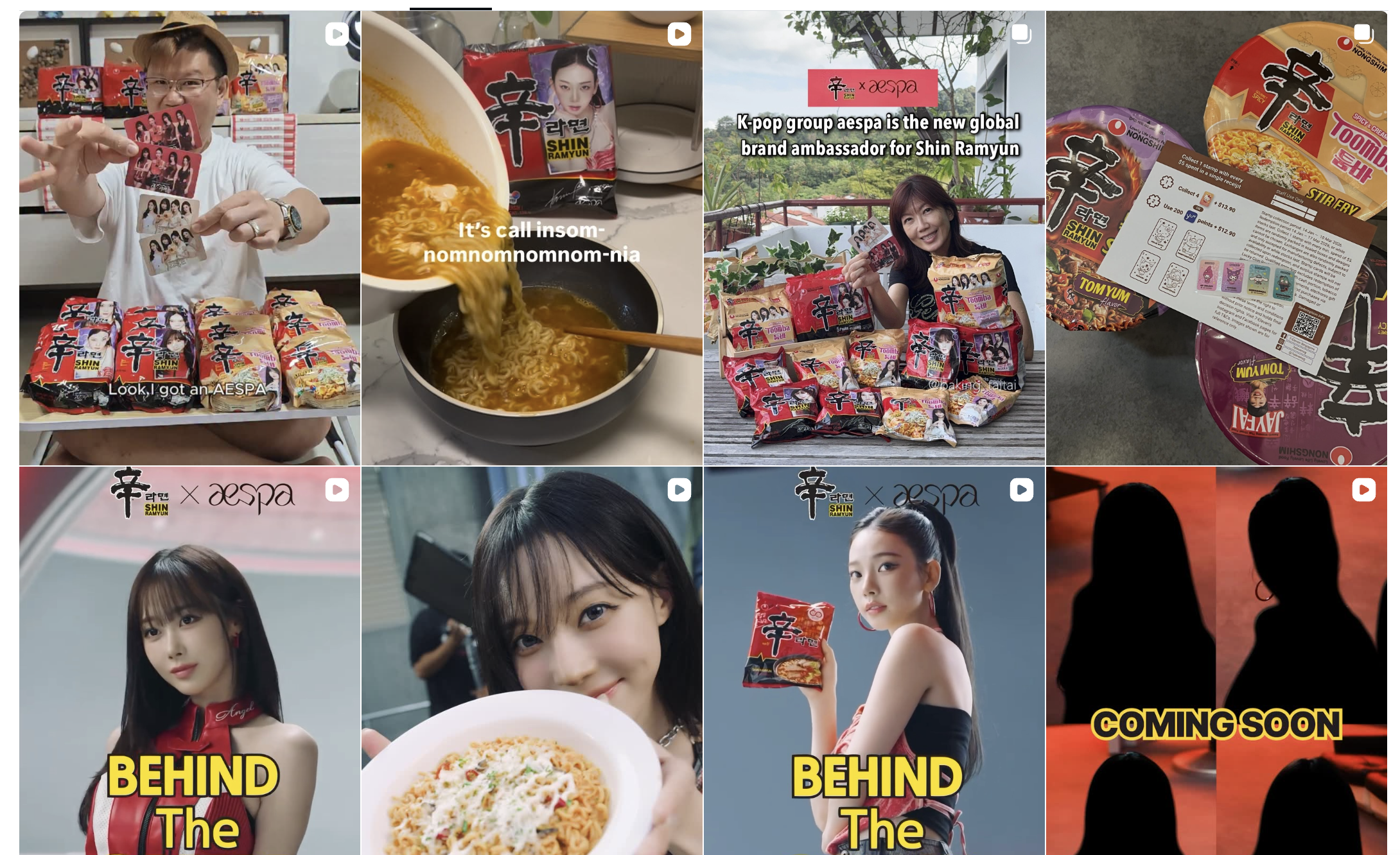 < 에스파를 모델로 홍보하고 있는 신라면 제품들 - 출처: '싱가포르 농심 인스타그램(@nongshimsingapore)' >